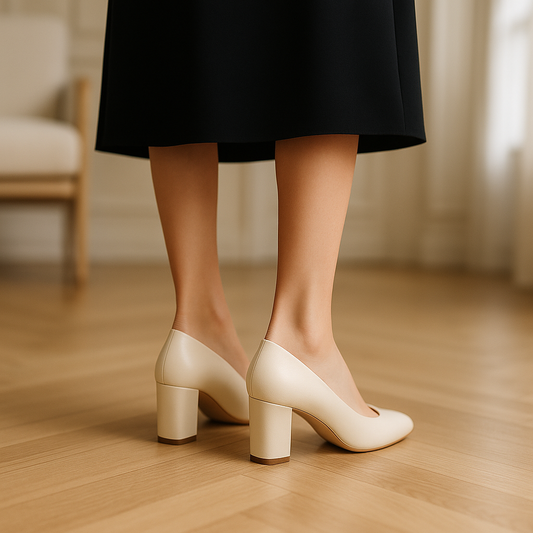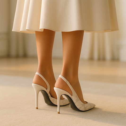 Pour une mariée, préférez un escarpin en satin ou en cuir nacré, avec un talon fin pour allonger la jambe. Les modèles avec nœuds, perles ou détails subtilement brillants sont idéals pour ce jour unique.