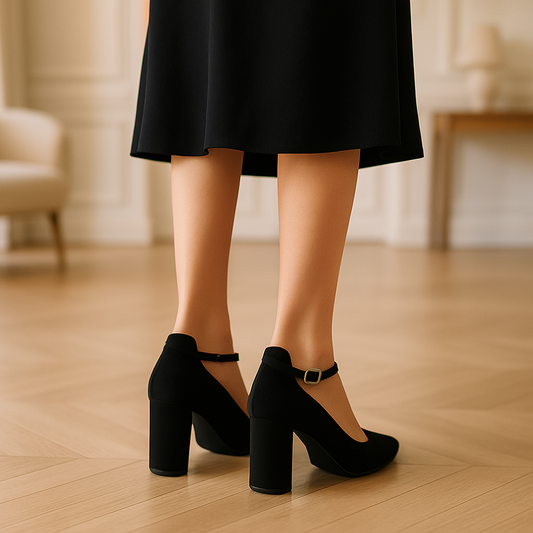 Si vous cherchez une hauteur raisonnable et un bon maintien, les escarpins avec talon bloc de 5 à 6 cm sont idéals. Stables et élégants, ils s’adaptent aussi bien à une journée au bureau qu’à une soirée entre amies.